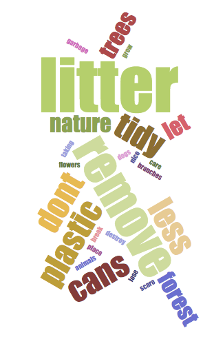 Before the forest bath, the big theme was ‘litter’. They often wrote only about that, or drew about garbage and litter. After the forest bath, this theme was still present, but they wrote and draw more, more in theme of ‘giving back’, like giving tea and water, hugging trees, visiting more forests, building homestays for animals… The trees were more ‘seen’ in their words and drawings. They also suggested more about less destruction, like don’t break branches. One kid called for protests against felling trees.