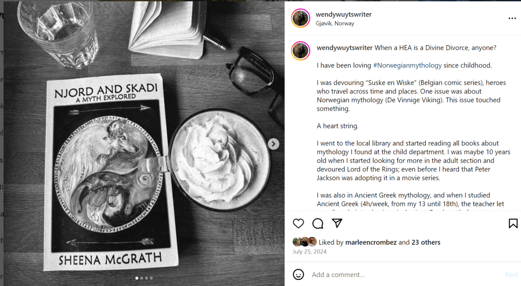 In my 15 year-long creative project based on the retelling of the Persephone-Demeter myth (Only in Dutch, de witte droom – de zwarte kou), these frost giants hold the power to halt a devastating “Ragnarök of bloodthirsty plants” with their icy influence. Yet, I’m torn between seeing Skadi or the Cailleagh as the embodiment of this fifth, frost-related power.