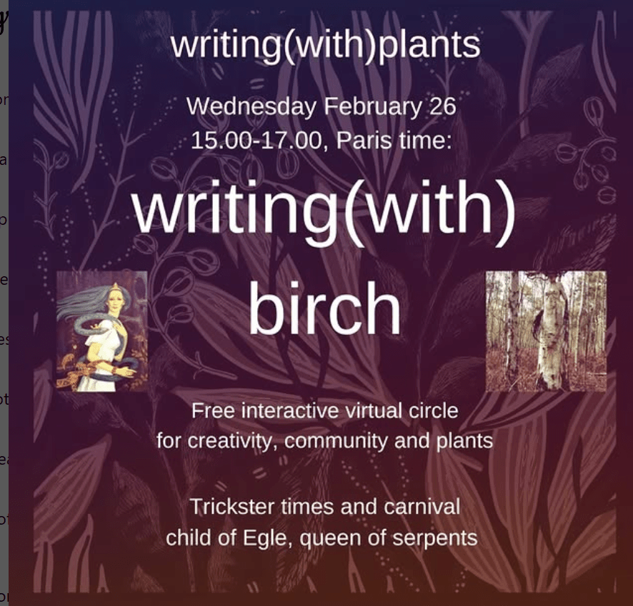 In this winter and spring, we are combining two projects: the Flowing with Eglė – Project and the Writing (with) plants – Project. The myth of Eglė who transforms herself and her four children into trees lends itself to the shapeshifting exercise at the end of each Writing(with) plants circle. We will do five circles, one for Eglė (spruce) and her four children.
