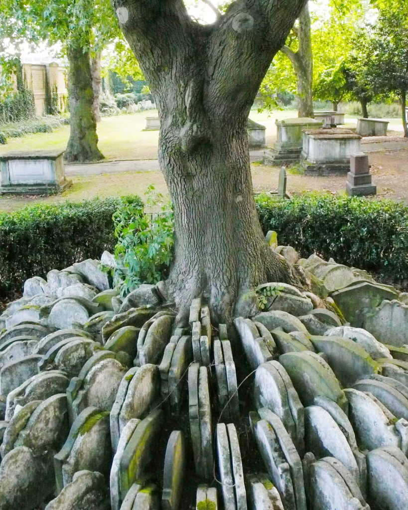 I was in St Pancras Garden in the summer of 2018. London was a stop for some days between Japan and Belgium. A number of the tombstones were piled together and an ash tree was planted at their centre. They call her “The Hardy Tree”. I had found her on a list of fifty special trees in London and the goal of this city trip was to explore the city through some of its trees. I would walk from one to the other.