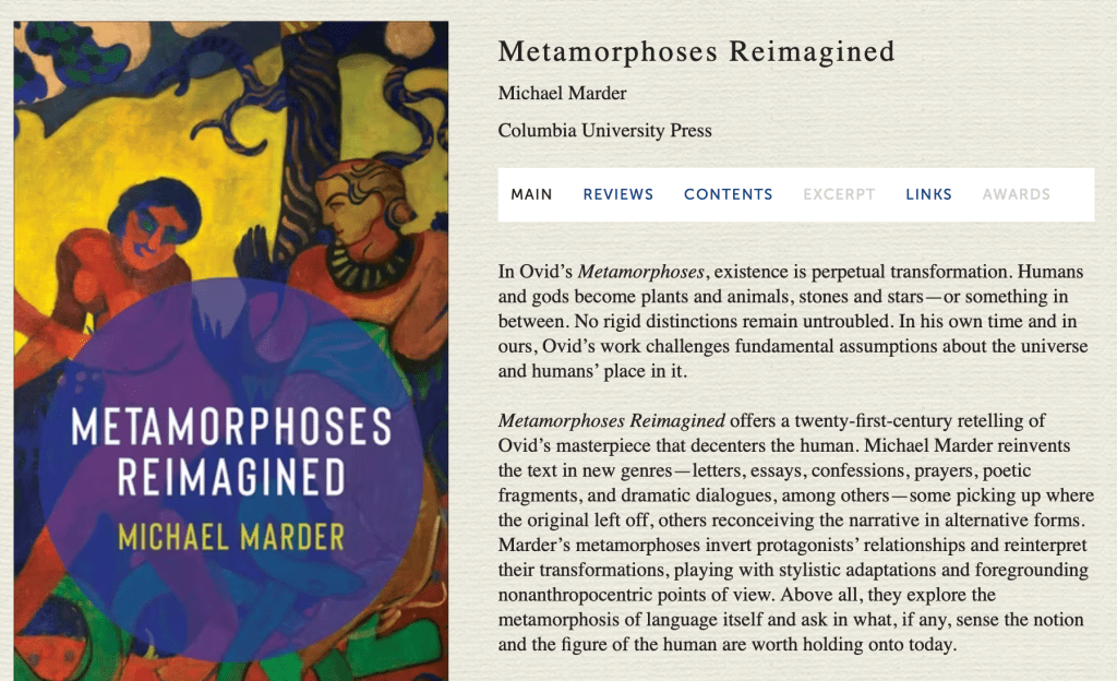 Marder, M. (2025). Metamorphoses Reimagined. Columbia University Press.