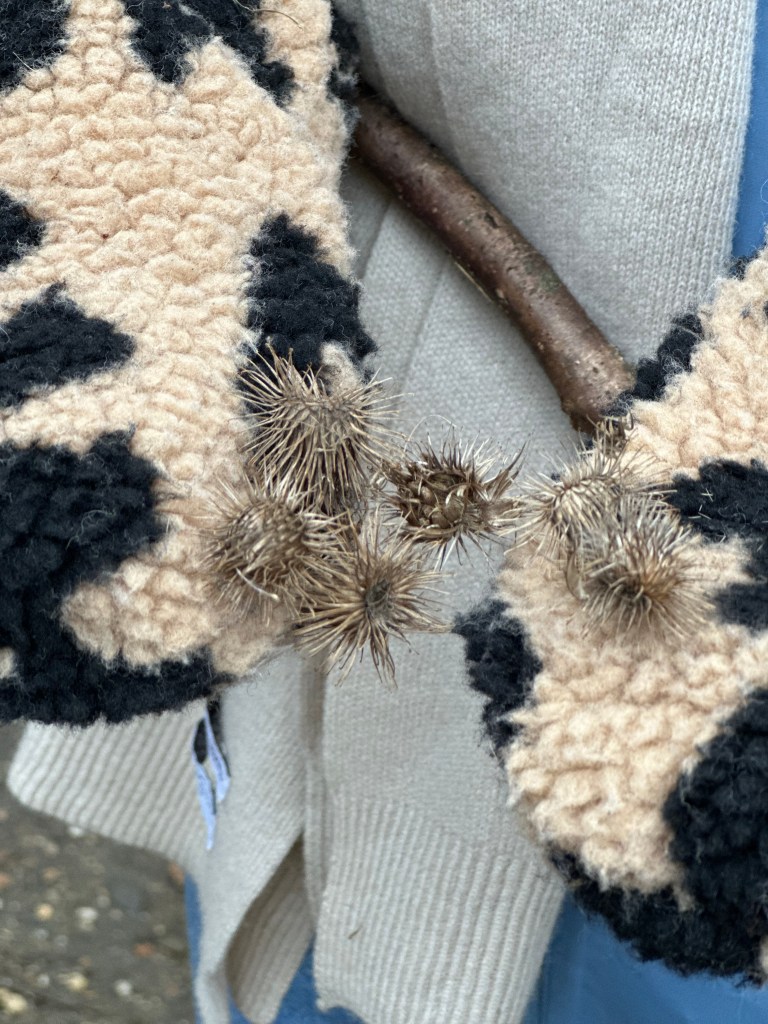 “Sometimes plants are using us too,” she said. She let the students play with burdock, a classic example in biomimicry, known for the invention of velcro… and perhaps the burdock was also playing with us.