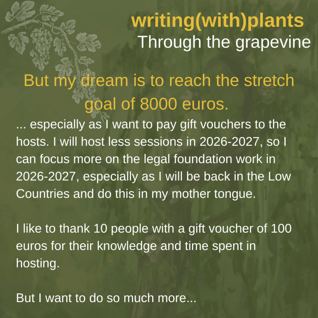 If you want to support a book which is full of gossip from especially Flemish forests, please consider to support our crowdfunding campaign. It is a limited edition. There will be a print-on-demand edition, but this will be programmed for late 2026 and at a more expensive price. You can learn more here: https://www.ulule.com/writing-with-plants-the-book