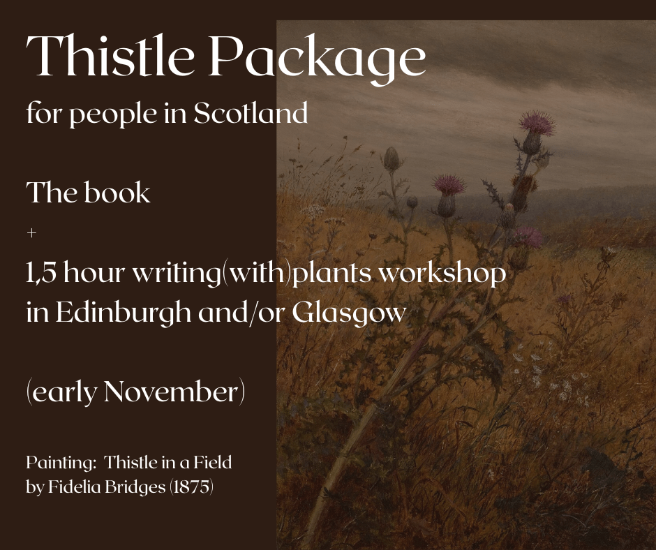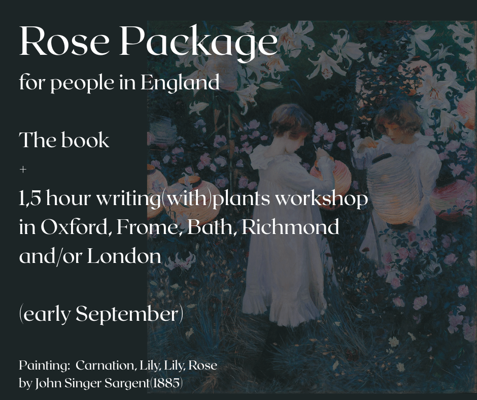 Created by a network of writers, facilitators and volunteers and initiated by Wendy Wuyts, the project aims not only to bring this practice into book form, but also to give something back: part of the income will fund book gift vouchers for online writing(with)plants hosts in 2026–2027, recognising their knowledge and and care work (including many hours of preparation).